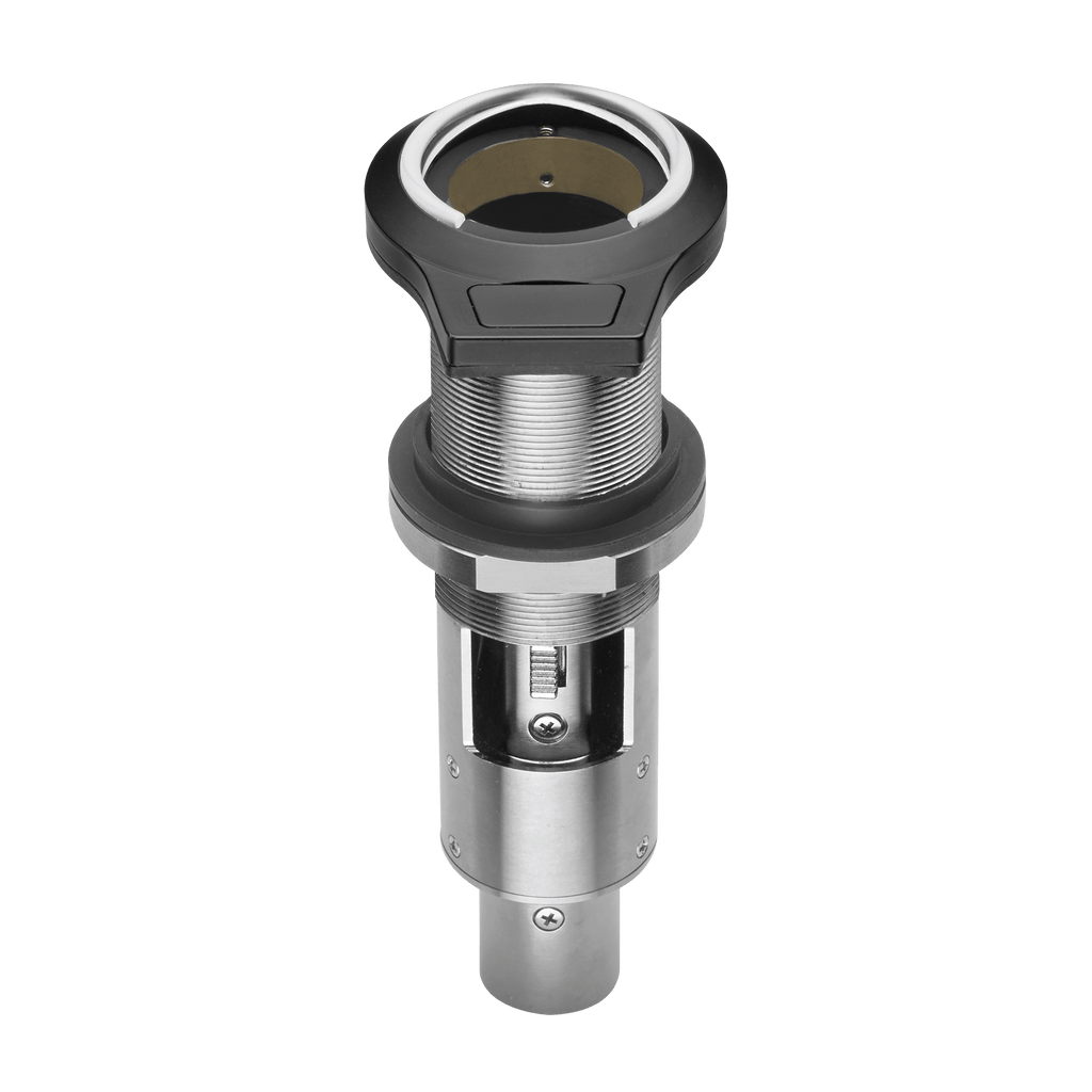 Flush-mount microphone socket for use with any 21 mm gooseneck or button-style boundary microphone with a 3-pin XLRM-type output. Integral, phantom-powered, Red/Green LED indicator ring.